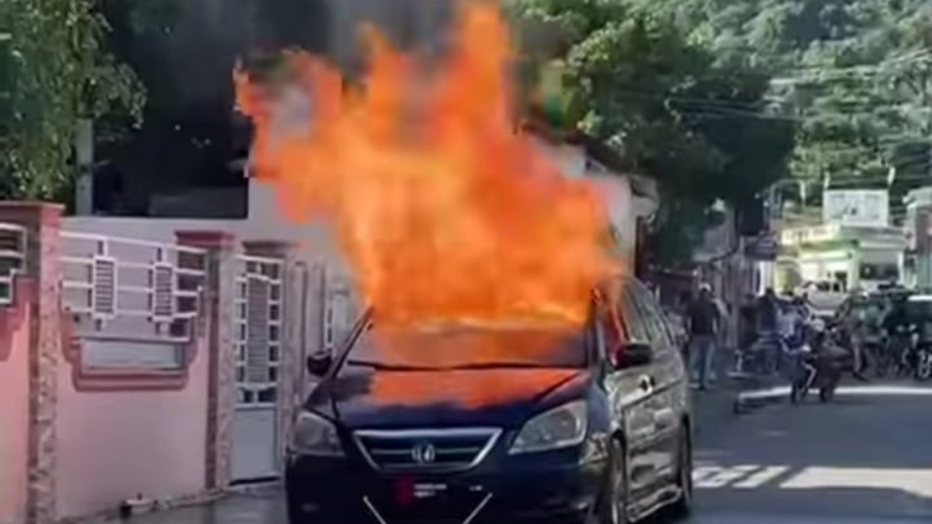 PUERTO PLATA.- Una minivan familiar Honda Odyssey de color negro resultó afectada por un incendio que se originó de manera inesperada en su interior cuando se encontraba estacionado en la calle Pedro Clisante del sector Padre Las Casas. El episodio que causó mucha tensión en la zona no dejó personas lesionadas, ya que las llamas no pudieron ser apagadas a cubetazos por lugareños, siendo sofocadas junto a bocanadas de humo por los potentes chorros de agua de un camión cisterna y de una unidad del benemérito Cuerpo de Bomberos Municipales de Puerto Plata.