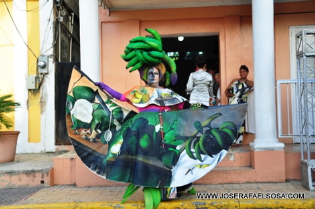Esta vez utilizó como motivos, los elementos tropicales caribeños, incluyendo los plátanos y la reproducción de los alimentos. Ya es una tradición que venga a Puerto Plata y se espera ver cual performance presentará.