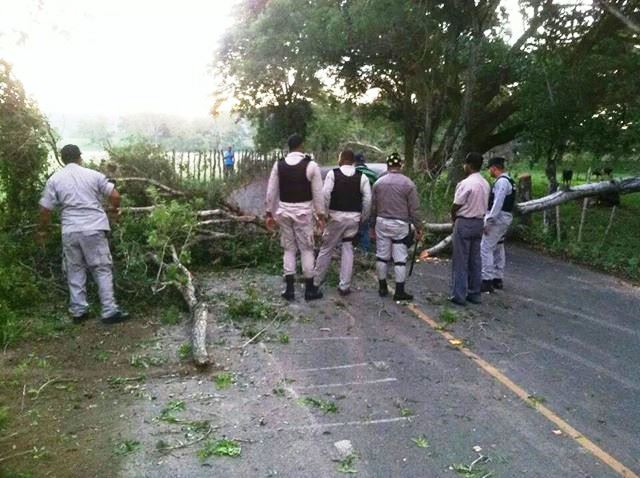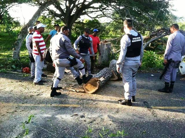 Se informó que fue necesario pedir una pala mecánica custodiada por un contingente de agentes de la Policía Nacional quienes portando armas largas y varias bombas lacrimógenas pudieron quitar los pesados troncos de madera en medio de la carretera y así restablecer el tránsito que había quedado obstruido entre las comunidades de Tiburcio, La Isabela Histórica, La Jaiba y otros poblados ubicados próximos a la Línea Noroeste.