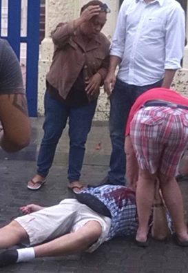 El turista germano tras ser impactado de un balazo en elpecho por los delincuentes cayó mortalmente herido al pavimento siendosocorrido por ciudadanos que los llevaron en la cama de una camioneta a unaclínica privada de Puerto Plata donde lamentable expiro cuando era ingresado alárea de emergencia, mientras que las autoridades informaron que el presuntoautor de éste hecho de sangre es el nombrado Dauris Manuel Felipe (La Daga) porlo que se activo la búsqueda del citado delincuente.
