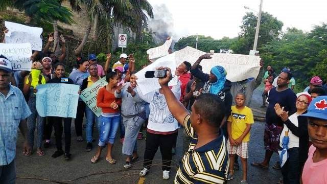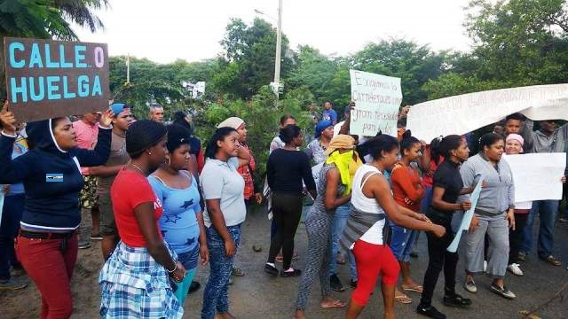 Decenas de hombres, mujeres y jóvenes que participaron de la manifestación de protesta, portaron carteles en los cuales se pudo leer las leyendas: “Si no hacen la carretera, no habrá paso para las playas Punta Rucia, La Ensenada y Cayo Arena”, “Queremos la carretera ya que es una gran necesidad para nosotros”, “Callé o huelga”, entre otras consignas que eran entonadas hasta que al lugar se presento un contingente de miembros de la Policía Nacional.