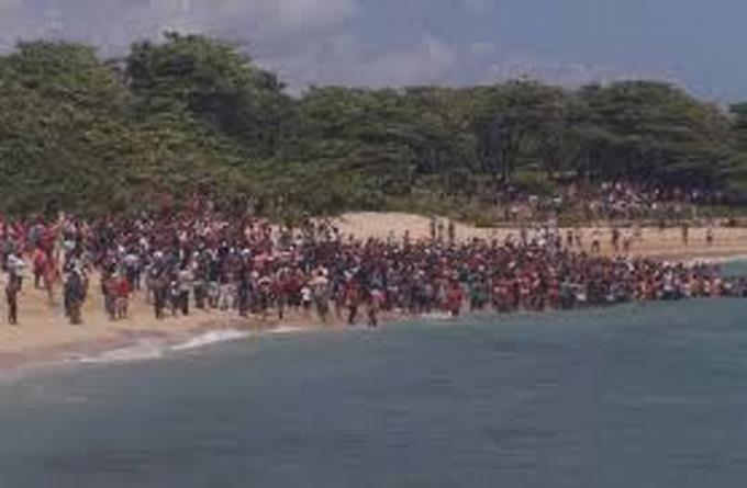 Hombres mujeres y niños levantaban sus manos y coreaban la canción “Paz en la tormenta”, que resonaba en una disco light que los acompañó hasta el último tramo del recorrido, unos 18 kilómetros aproximadamente desde Maimón hasta la playa conocida popularmente como la “Playa de Camacho, en la parte alta de esta ciudad.