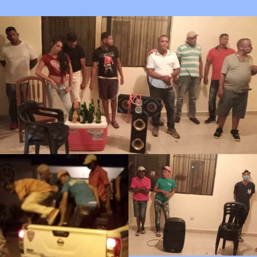 En el municipio de Villa Isabela fueron detenidas 48 personas quienes se encontraban en una fiesta en horas de la madrugada donde se incautaron 23 sillas plásticas y 3 bocinas debido a la molestia que le causaban a los vecinos.