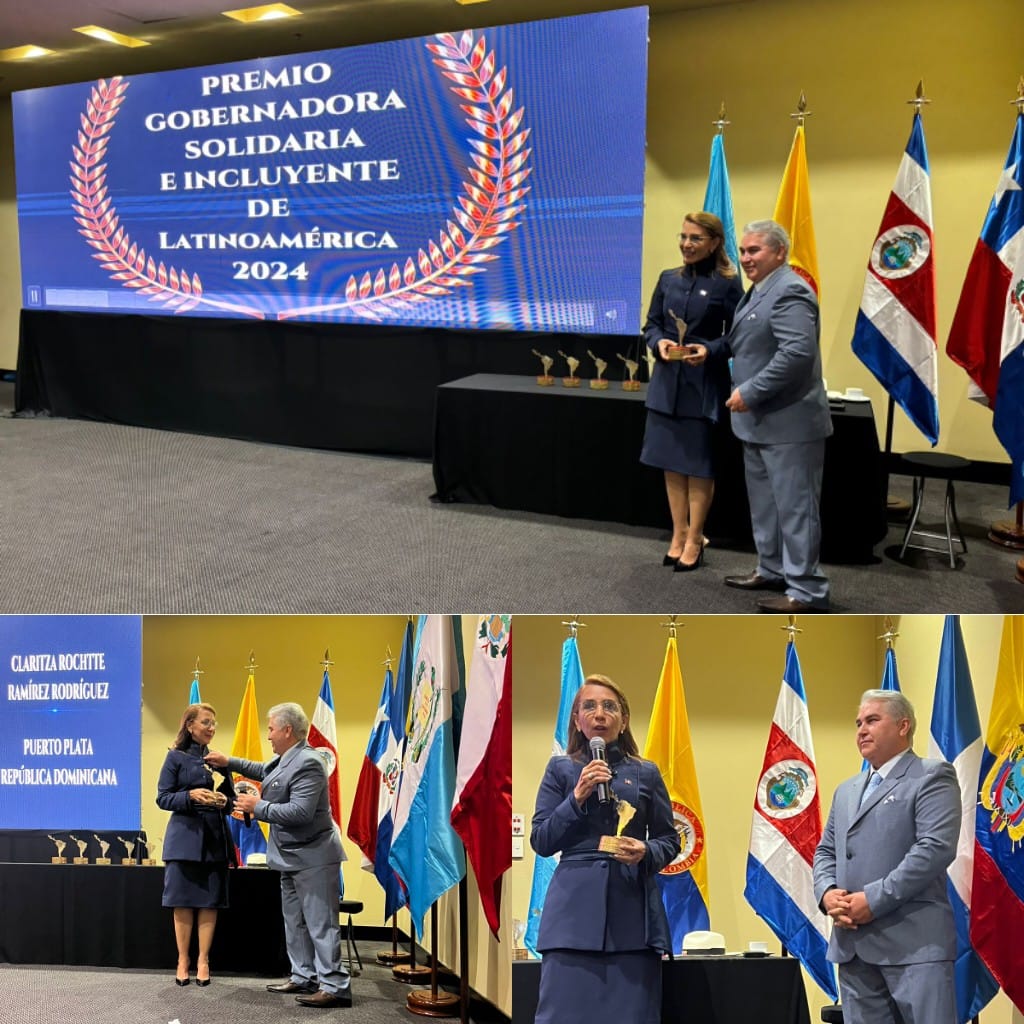 PUERTO PLATA.- La gobernadora civil de Puerto Plata, Claritza Rochtte Peralta de Senior, fue distinguida en Colombia por la Fundación para el Desarrollo de la Solidaridad y la Inclusión Social (Inclusocial), entidad que le entregó el título internacional de “Gobernadora Solidaria e Incluyente de Latinoamérica 2024”.