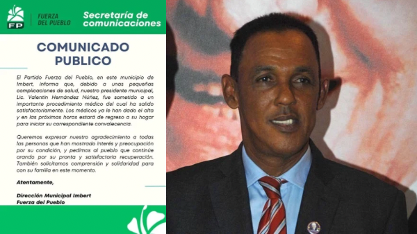 Dicho ciudadano quien es el presidente del partido Fuerza del Pueblo (FP) en esa localidad puertoplateña, fue dado de alta tras recibir una intervención médica que lo mantuvo ingresado en un centro de salud.