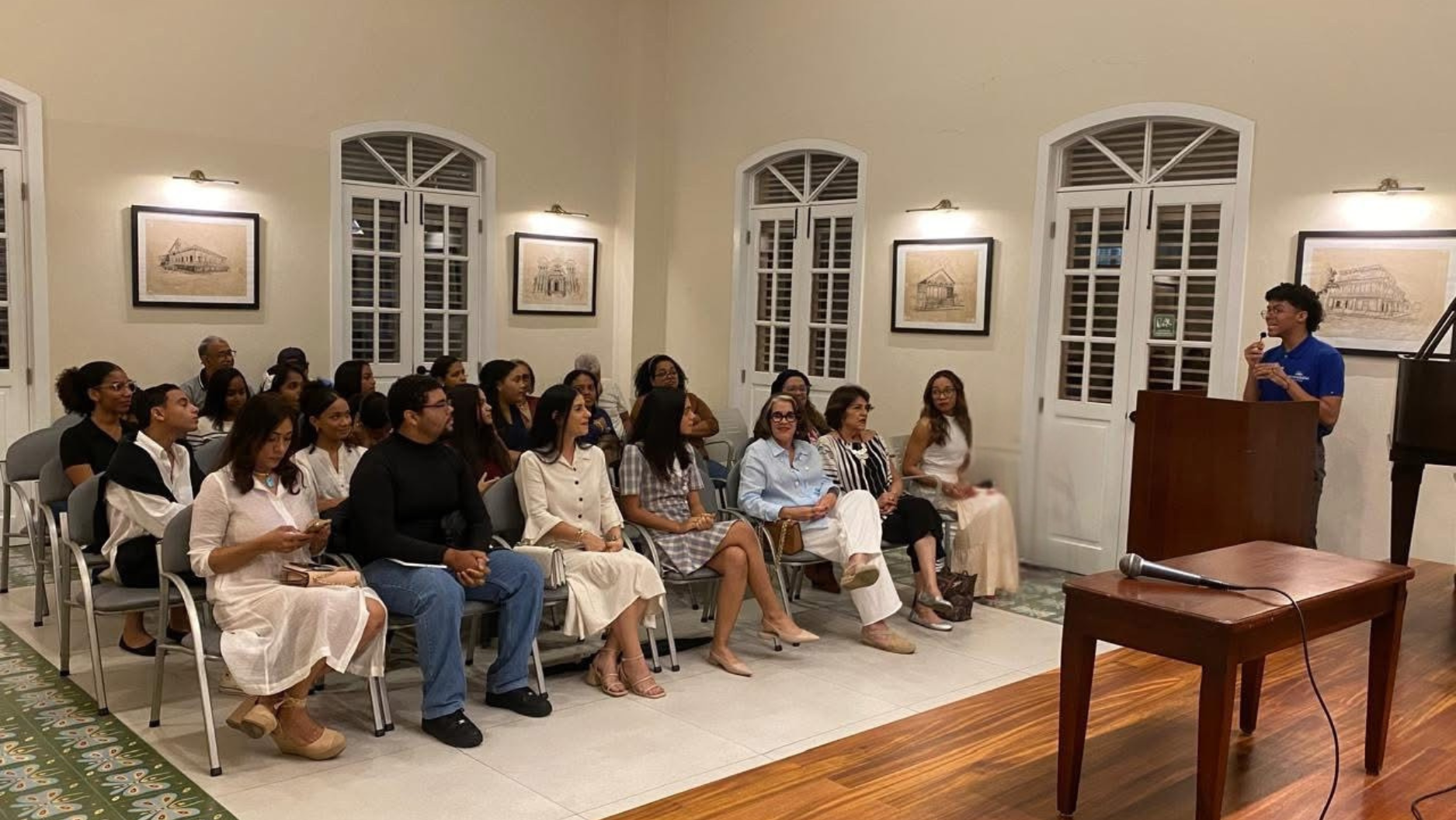 La Sociedad Cultural Renovación celebró este martes el Día Nacional del Poeta con una velada llena de versos, música y emociones, desarrollada en el salón Dr. Osvaldo Brugal de la institución. El encuentro, titulado “Micro Abierto de Poesía”, reunió a poetas, estudiantes y amantes de la literatura en un ambiente que combinó la palabra y el arte musical.