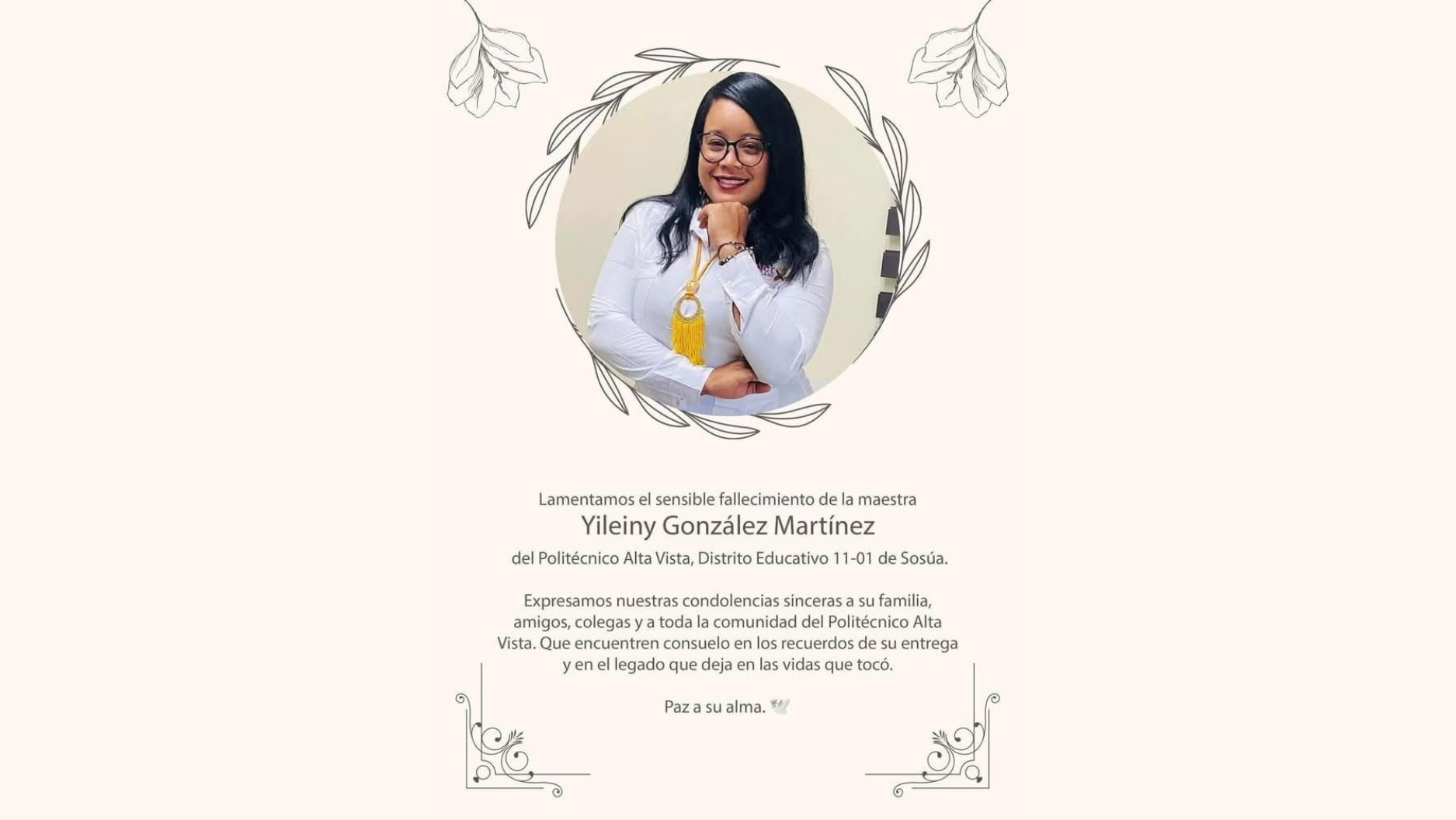 “Nuestra querida compañera Yileiny González Martinez ha dejado una huella imborrable debido a que su ejemplo de vocación docente y espíritu solidario seguirán inspirando nuestras luchas y esfuerzos por una educación más justa y humanas”, expresó la líder magisterial Altagracia Frías Paredes.