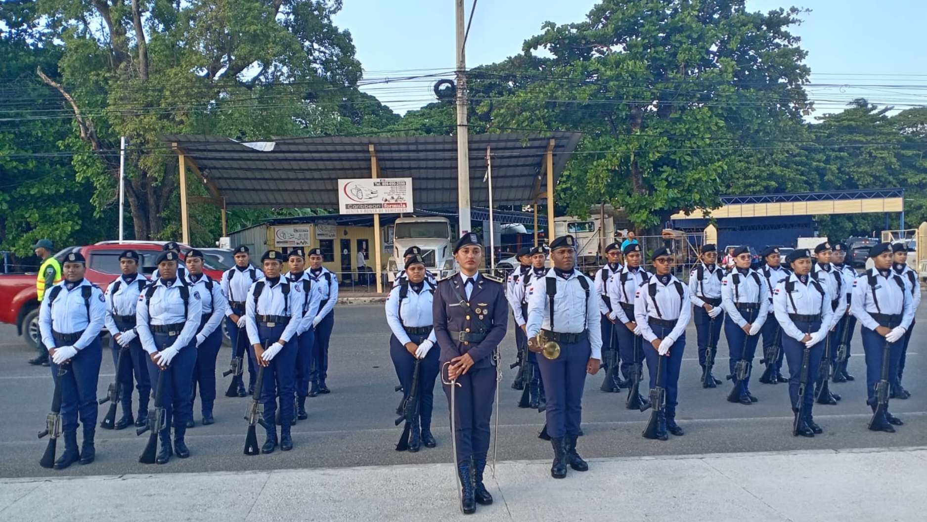 Al mando de la segundo teniente Adriana Castillo Barrera y portando fusiles, la tropa femenina adscrita a la Base Aérea Puerto Plata, causó mucha atracción en los asistentes al acto cívico efectuado en la carretera turística Luperón, frente al monumento a las hermanas Mirabal en el sector Marapicá.