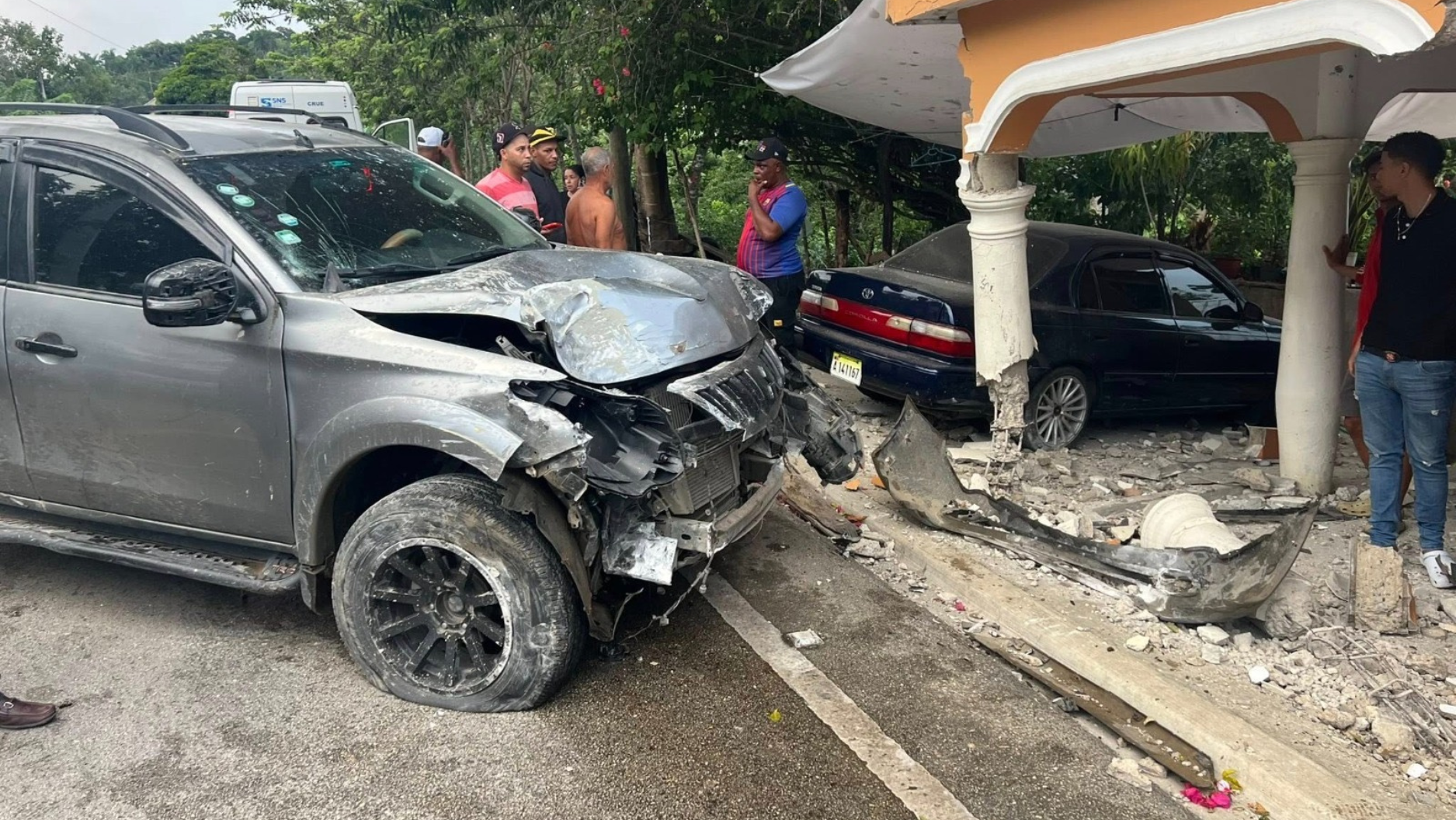 PUERTO PLATA.- Destrozada quedó la galería de una residencia en el distrito municipal Yásica Arriba tras ser impactada por una camioneta que se descarriló cuando transitaba por carretera turística Gregorio Luperón y afortunadamente no hubo lesionados. Se comenta que el conductor no identificado del vehículo perdió el control tras ser halado por el peralte de la vía ya que quiso cortar una curva cerrada en la vía que estaba mojada por un aguacero previo.